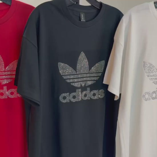 Step into the world of athleisure with a touch of glamour – order your Adidas Rhinestone Gildan T-Shirt today and let your style shine bright with the perfect blend of sporty confidence and dazzling details. It's not just a shirt; it's a symbol of active elegance.