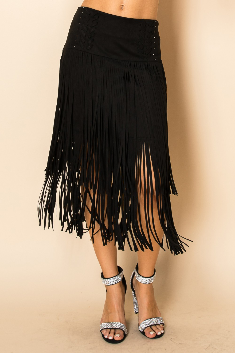 Fringe Midi Skirt – Western Boho Suede Look