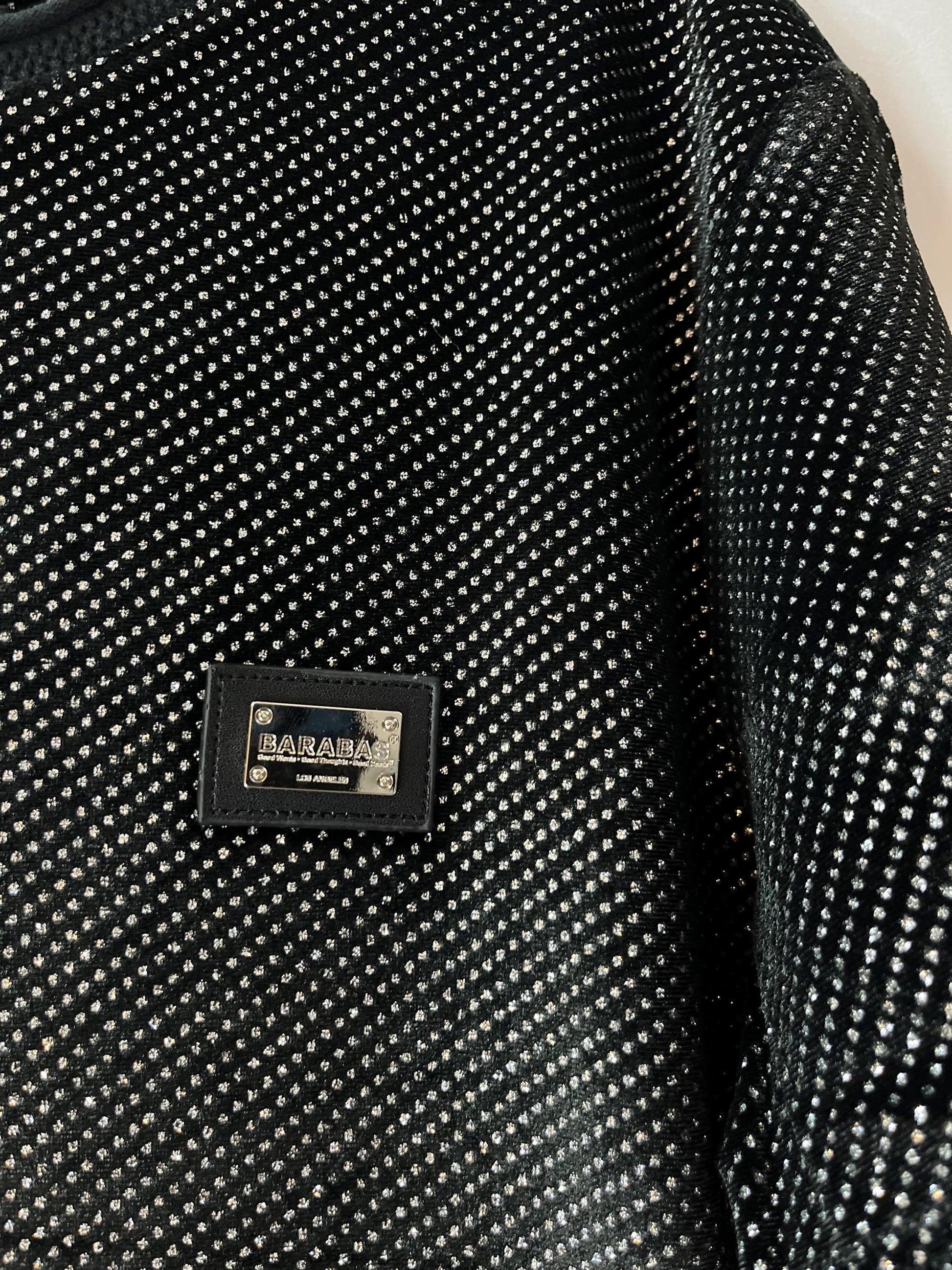 Make a bold fashion statement with this Barabas black sparkle T-shirt — perfect for nightlife, parties, concerts, or upscale casual looks. This designer tee features a diamond-studded crystal embellishment throughout, giving it a luxe and eye-catching shine. Crafted with a soft and stretchy fabric, this shirt offers both comfort and standout appeal.
