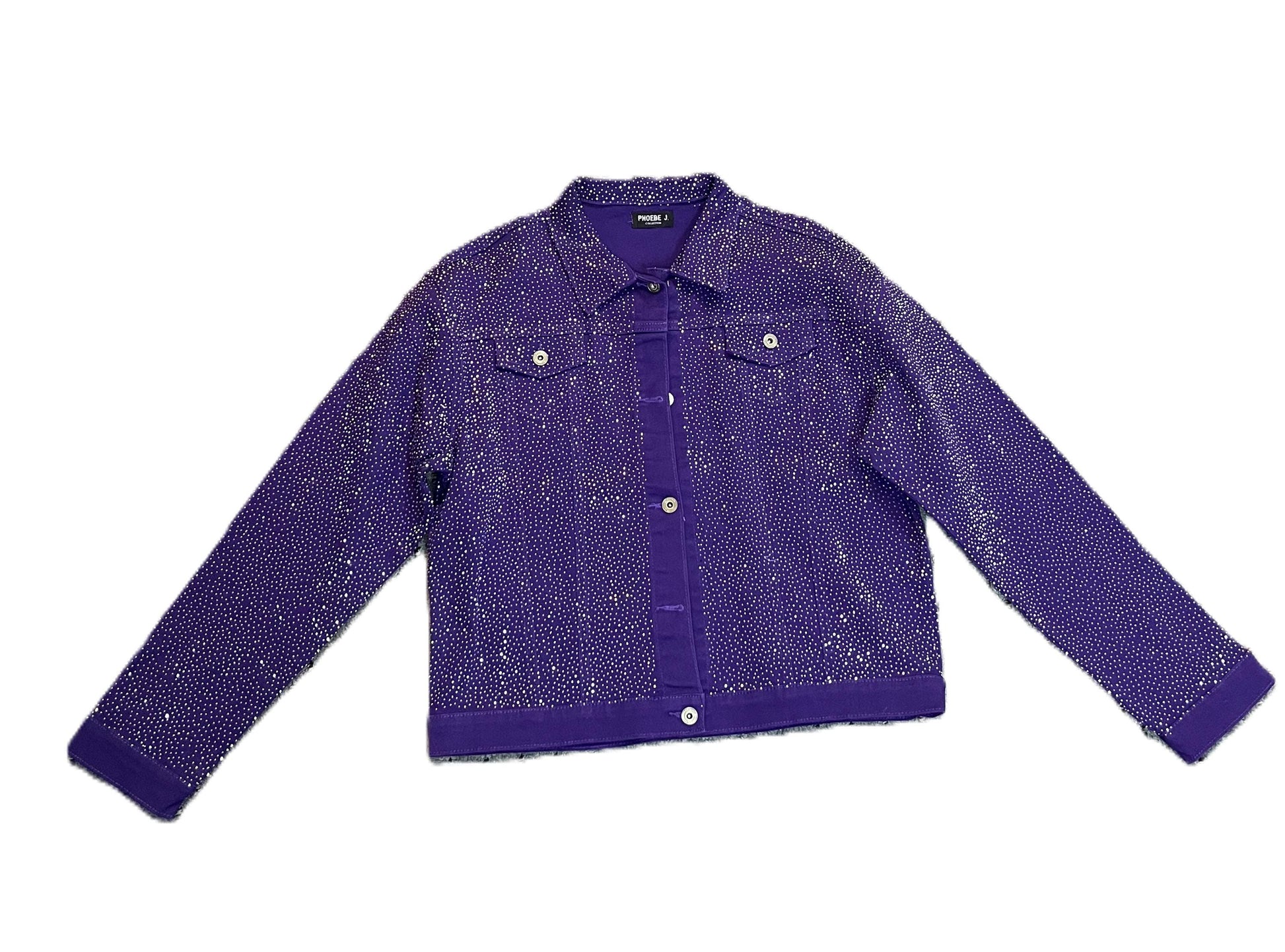 Elevate your casual wardrobe with this classic rhinestone denim jacket. The jacket includes functional chest pockets, button-front closure, and a collared neckline that adds structure to any outfit. Crafted from durable denim material, this jacket offers both style and practicality for year-round wear. The fitted silhouette maintains a feminine shape while allowing comfortable movement. Perfect for layering over dresses, t-shirts, or your favorite sweater, this denim jacket is a must-have staple that transitions seamlessly from day to night.