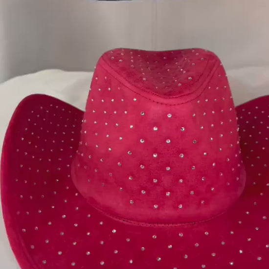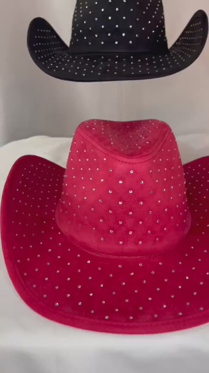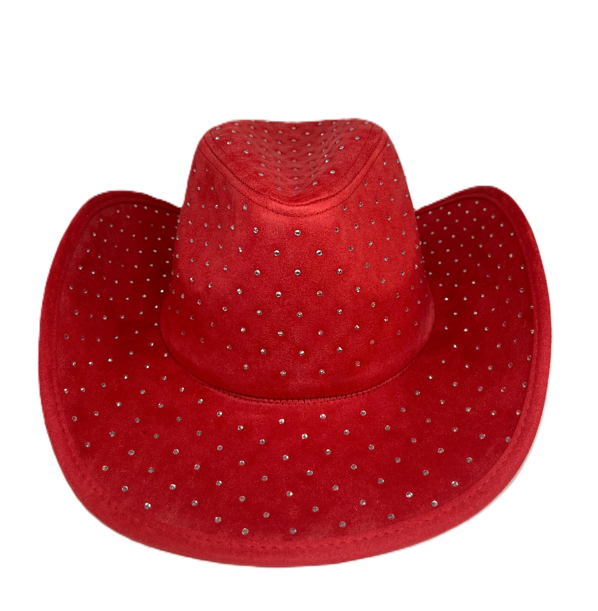 Add a dazzling touch of glamour to your western wear with this eye-catching rhinestone studded cowboy hat. Available in multiple sophisticated colors including tan, black, light blue, and red, this statement piece features carefully placed crystal embellishments around the whole hat including its bottom that catch and reflect light beautifully. The classic cowboy hat silhouette is enhanced with an intricate pattern of sparkling rhinestones, creating a stunning effect that's perfect for special occasions or making a bold fashion statement. The wide brim offers practical sun protection while the structured crown maintains its shape. The hat's design includes an especially elaborate rhinestone pattern along the brim's edge, adding an extra touch of sparkle from every angle. Crafted with attention to detail, this western-style hat combines traditional cowboy hat styling with contemporary crystal embellishments for a unique blend of classic and glamorous appeal. Perfect for country music festivals, western events, or any occasion where you want to shine.